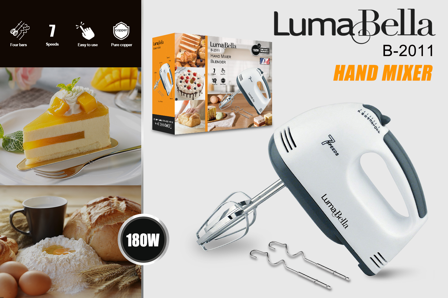 Batidora de Mano LumaBella B-2011 - 180W con 7 Velocidades