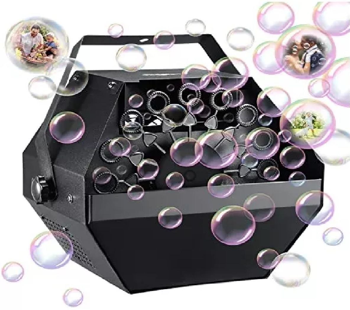 Máquina de burbujas con control remoto: La máquina de burbujas para fiestas tiene un control remoto. Cambia el interruptor de encendido/apagado al engranaje "II", puedes controlar cómodamente la máquina de burbujas a corta distancia. El control remoto puede controlar dentro de 32.8 pies