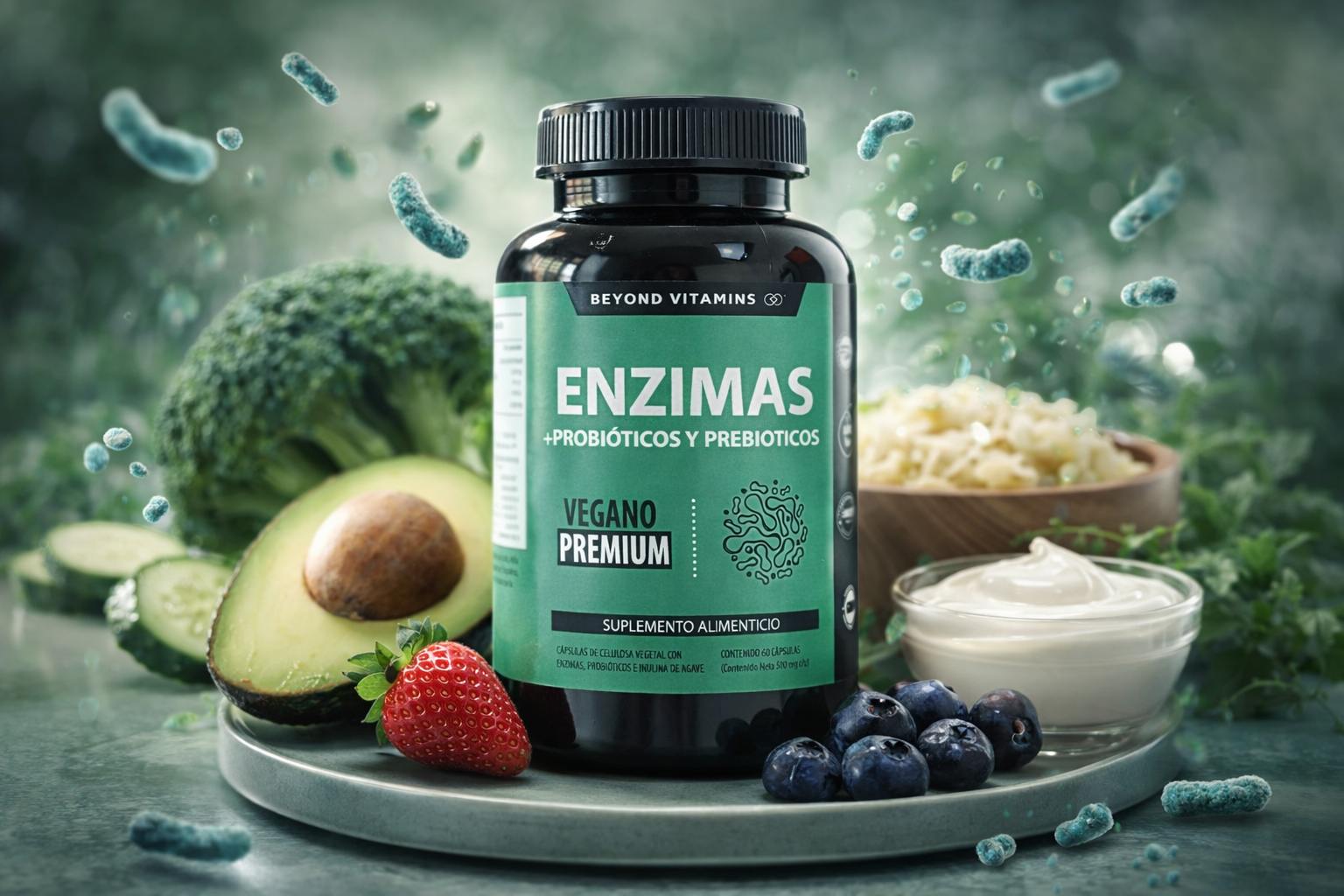 ENZIMAS + Probióticos y Prebióticos – Vegano Premium 🌿