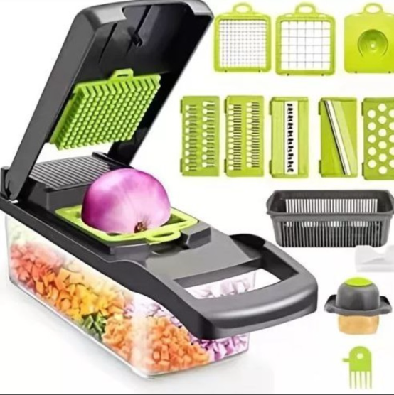 Versatilidad Inigualable con 16 Funciones: Este kit integral incluye una extensa gama de cuchillas intercambiables que permiten realizar desde cortes en juliana fina hasta cubos grandes o rallados específicos. Es la solución perfecta para preparar ensaladas, guisos o guarniciones decorativas en una fracción del tiempo habitual.