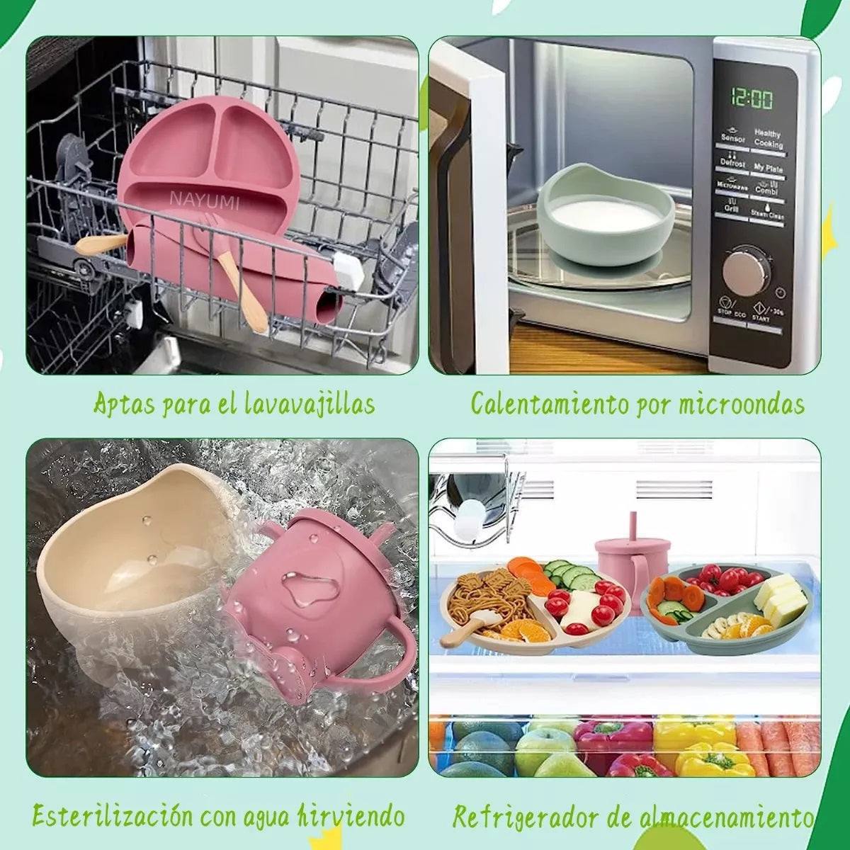 Además, el conjunto permite una nutrición saludable sin residuos ni materiales nocivos para el niño.